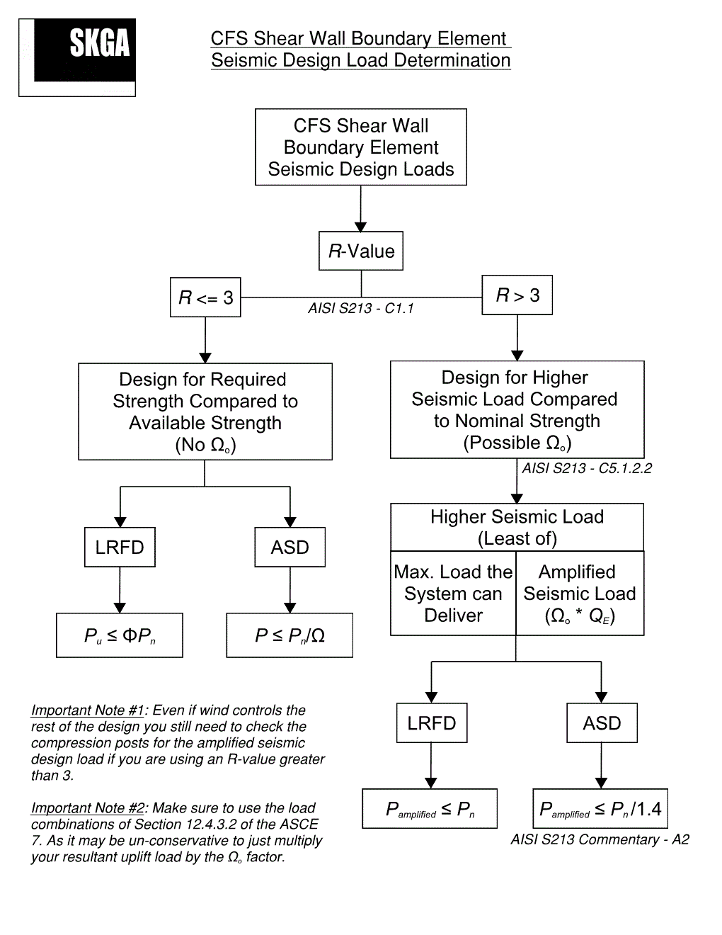 What is the amplified seismic load? Per Section A2, the amplified seismic load is the load determined from the load combinations that include the seismic load effect including overstrength factor, Ωo, for strength design (LRFD) or for allowable stress design (ASD). However, per Section A2 of the AISI S213 commentary, if an ASD load combination is used, then the nominal strength must be divided by 1.4.