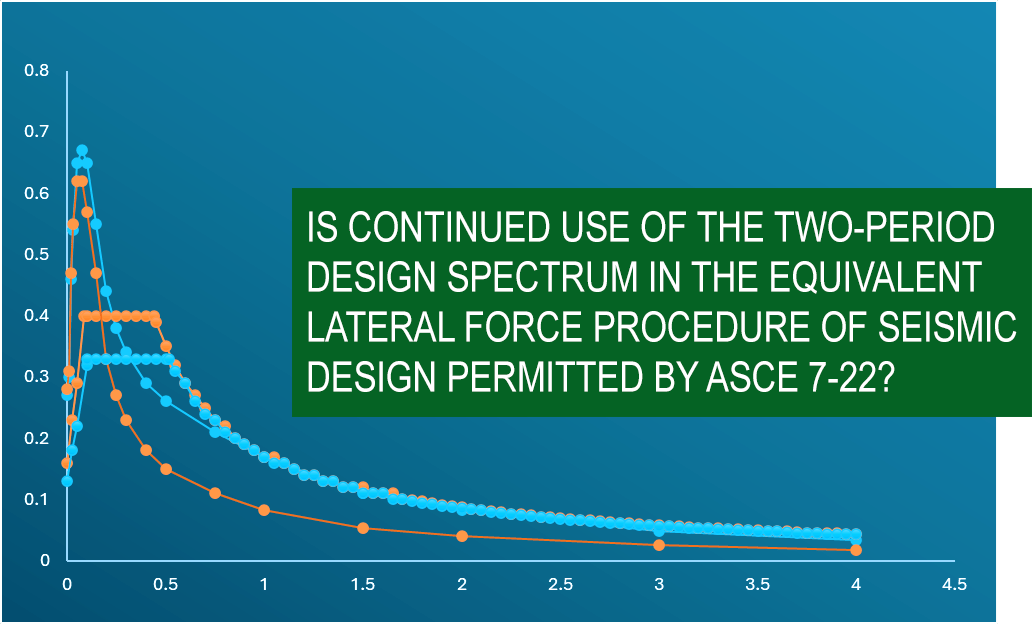 Judging by the number of inquiries received, there appears to be significant confusion as to whether the two-period design response spectrum of ASCE 7-22 Figure 11.4-1 can continue to be used in the equivalent lateral force (ELF) procedure for seismic design, following the introduction of multi-period design response spectra (MPRS) in ASCE 7-22. As explained below, we interpret ASCE 7-22 to permit the continued use of the two-period design response spectrum in the ELF procedure. It needs to be recognized, however, that the two-period design response spectrum of ASCE 7-22 is not the same as that of ASCE 7-16. This will be the subject of a follow-up article.